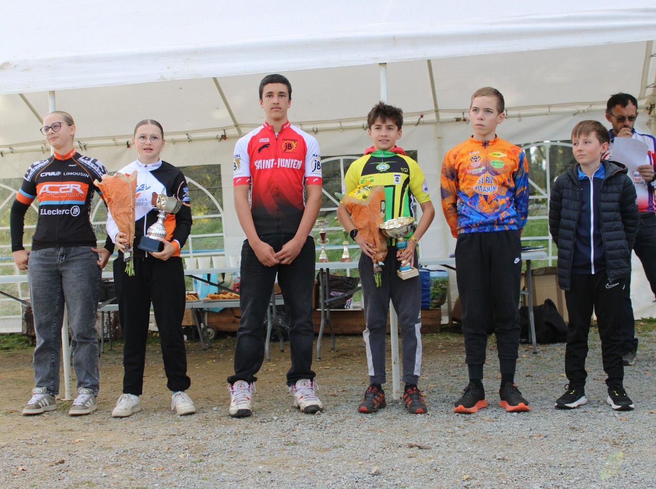 En 11/12 ans Malo Gazonnaud termine 7ème; Noah en 15/16 ans 3ème; en 3ème cat Christophe Mirablon 16ème, Alex 27ème; en 4ème cat David 4ème, Daniél 7ème Michel 11ème mais non classé car en VTT !!