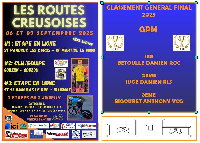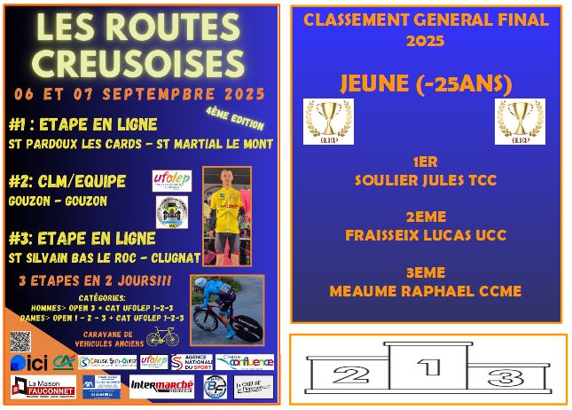 C'est fait !! Grace à sa Treizième Place Théo reprend le Maillot Jaune de leader !! Bravo Théo, plus qu'une étape pour gagner ce Granit 2025 ! Ce sera à St Chabrais où les points seront doublés pour cet épilogue du Granit Marchois édition 2025.